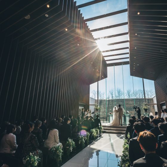 チャペルは、木の温もりを感じる雰囲気で、ドレスが映えるということにも惹かれました。そして一番の決め手は、空に向けて誓うというコンセプトにとても魅力を感じ、ザ・リーヴス プレミアムテラスで結婚式をあげようと話し合い決めました。水・緑・空の自然を兼ね備えた会場は他になく、とても魅力的を感じました。