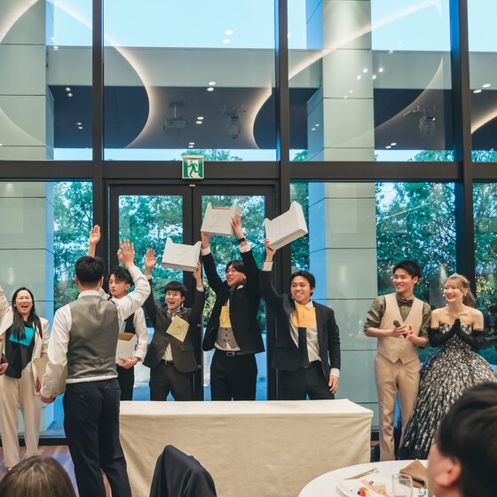 進行でのこだわりは、自分たちはもちろん、ご列席をしてくださったゲストの皆様全員で楽しめるような結婚式にしたいと思い、参加型のゲームやイベントを取り入れました。