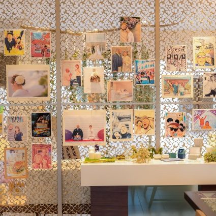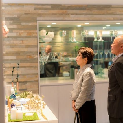 何よりも、シンプルで、アットホームで、笑顔まみれの結婚式がしたい。2人のイメージはつねに一緒で、”ヒュッゲ”ウェディング、を理想としていました。チャペルでの挙式は、厳かにかつ、大空のもとで息をのむような、空間を演出したいと思いました。みなさんに最初に逢う瞬間と家族への感謝をたいせつにしたかったのです。それに、写真をとるのを忘れて、肌で感じてもらいたいという気持ちが強く、披露宴も、森の中をイメージし、あたたかな灯りをともすことをベースにしました。両家の両親の結婚記念日も10月とあって、3組でのケーキ入刀、お手本バイトは親戚も楽しめ感慨深いものになりました。ドレスとタキシードも、ふたりでイメージをあわせ、式とはがらっと代わり、またみなさんにはっとしてもらいたい、そんな想いで選びました。ラウンジ装飾はわたしたちの、家、そのまま再現するかたちで、手作りの写真をキャンバスにはり、ドライフラワーやハーバリウム、キャンドルなど、普段とは違う式だったな~と、楽しんでもらいたいと、2人で時間をみつけて手作りしたことが一番のこだわりだったと思います。