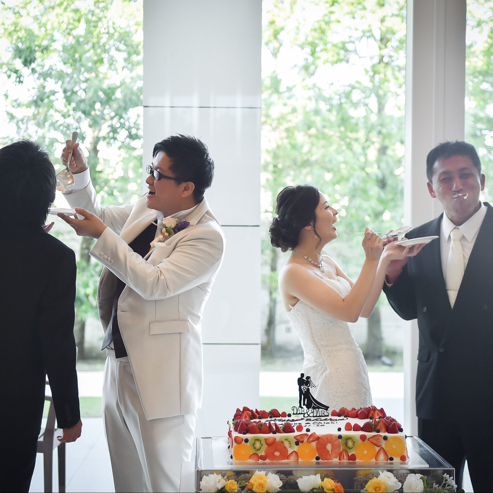 とっても良い天気で朝からワクワクしていました。朝の準備の段階で忘れ物に気づき、急いで買いに行くというハプニングもありましたが良い思い出になっています。挙式前には、待機場所がゲストの方とドア一枚先の距離で、話し声が聞こえてきてとっても緊張しましたが、実際にゲストの方の顔を見ると、自然と笑顔で迎えることができました。アフターセレモニーからはゲストの方との距離がぐっと近くなり、緊張も解けました。披露宴は終始楽しく、あっという間に終わってしまいました。たくさんの方におめでとうと祝福され、たくさんのありがとうを返せたのではないかと思います。終わってからも良い結婚式だったと多くの方から声をかけられ、私たちが思い描いた最高の結婚式ができたと感じています。