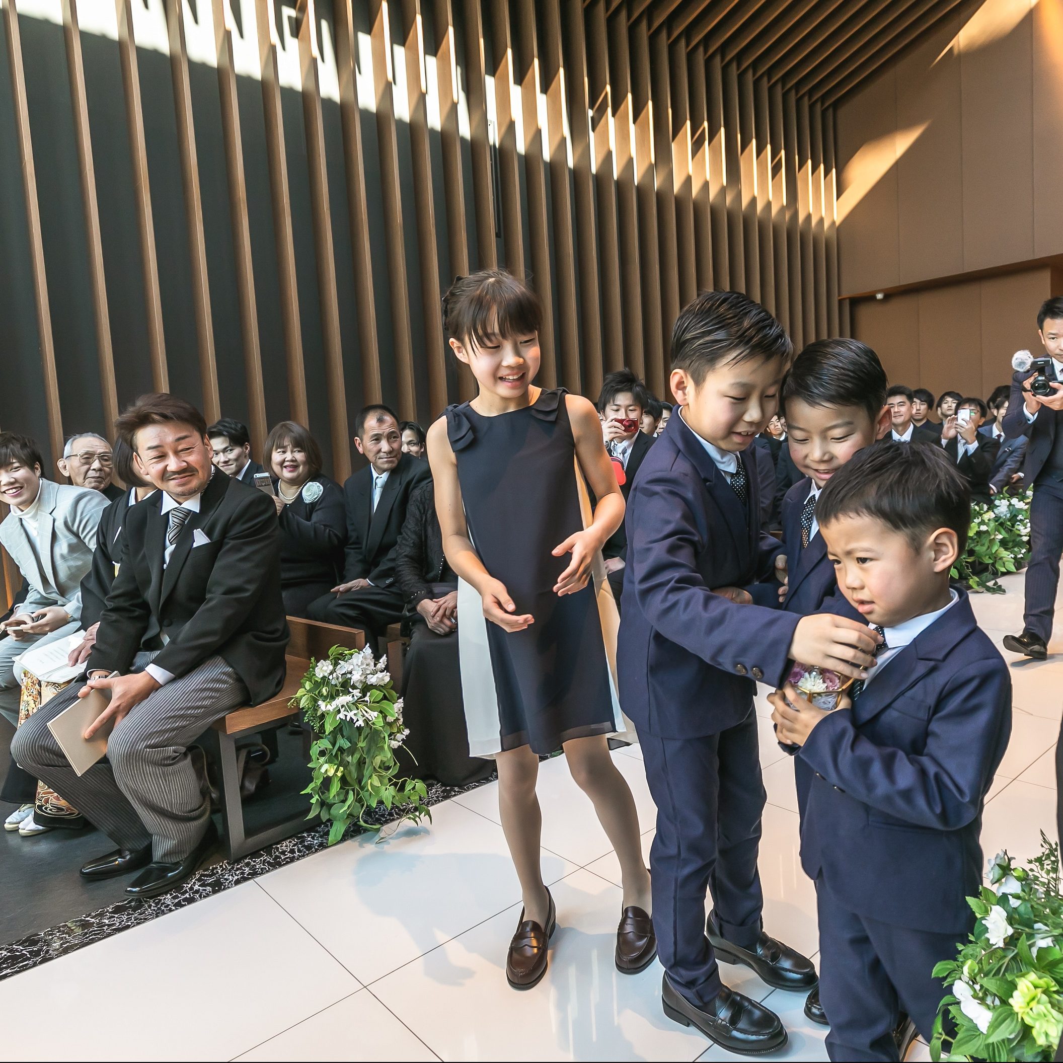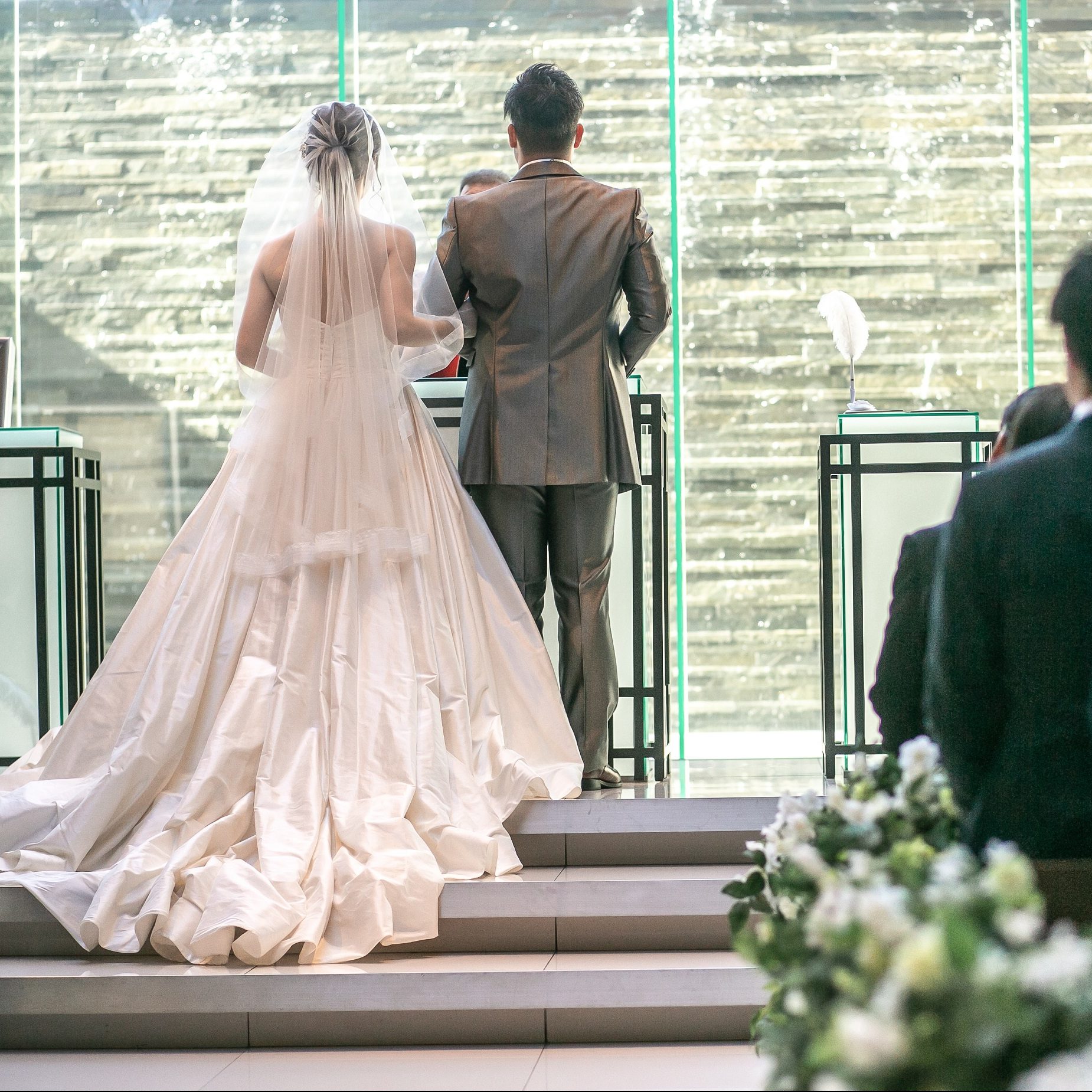 チャペルの天井が高く、正面から天井にかけてガラス張りになっており、きれいに光が差し込み素敵な空間でした。また、参列者席の背もたれが絶妙な高さで、圧迫感がなく、着物の方も座りやすい形になっていました。すべてを屋内で行うことができるため、天候の心配をしなくてよかったです。広々とした会場だが、動線がしっかりしていて動きつかれないと感じました。トイレやパウダールーム、喫煙所などの設備もしっかりしており、さらにはマウスウオッシュなどの備品も整っていて細やかな配慮に惹かれました。スタッフさんの丁寧な対応や、こちらからの提案を快く前向きに受け入れてくださるこころの広さ、柔軟さ、演出力の高さがなによりでした。