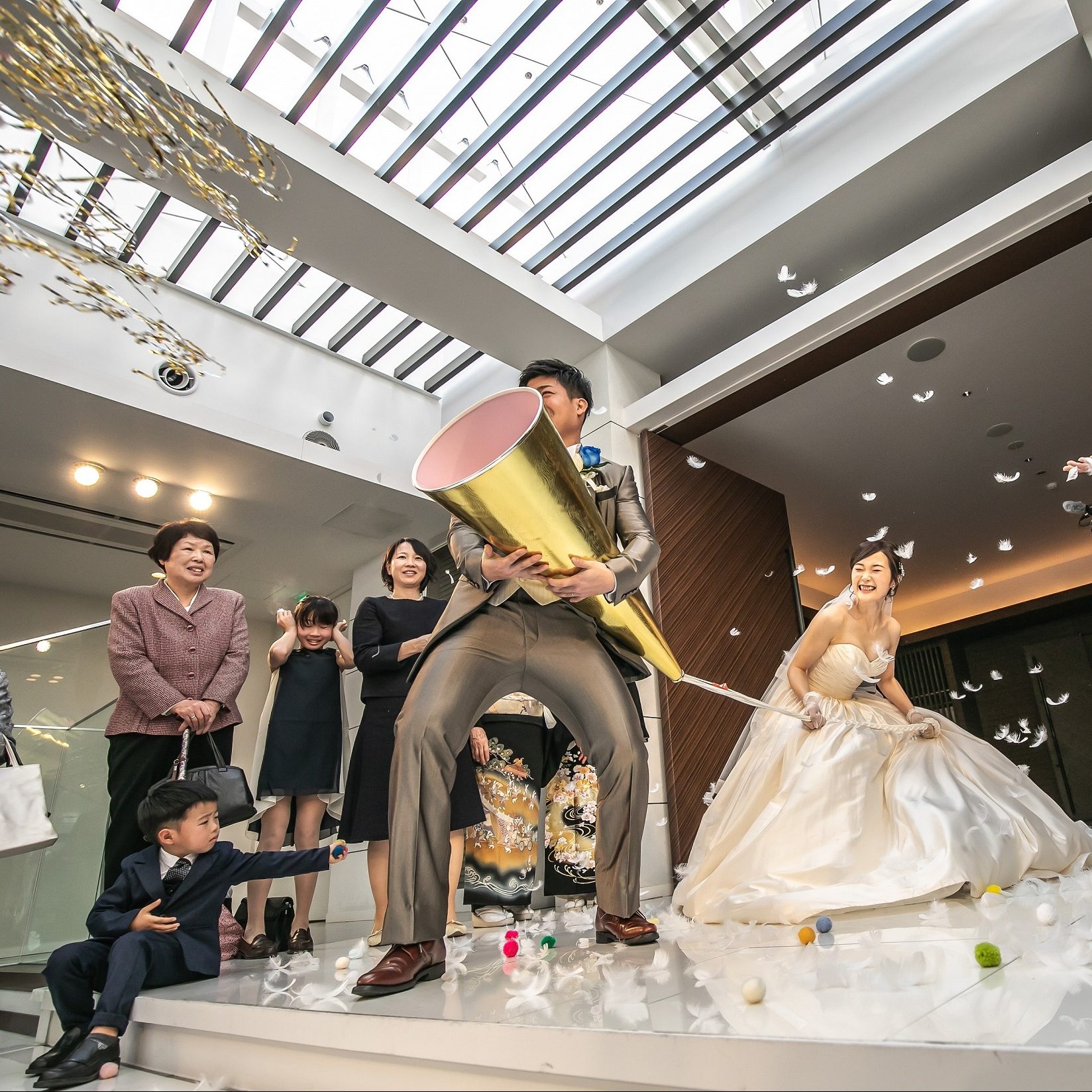 朝、会場に入った瞬間から最高でした。控室にもスタッフさんからの素敵なメッセージが準備されていたり、フルーツなど素敵なおもてなしをしていただいたりと幸せでした。打ち合わせで話をしていた、宴ウエディング、笑いの多いウエディング、というのを雰囲気作りからかなえていただきました。カメラさんにもたくさんのシーンを抑えていただいているのを感じ、データが楽しみだなと思いながら過ごしていました。やりたいことをすべて詰め込んだ結婚式・披露宴にしていただけたので、終わったときにはやり切った感・満足感でいっぱいでした。この上なく最高な、私たちだけの結婚式になったと思っています。プランナーさんをはじめ、すべてのスタッフさんにたくさんの力を注いでいただいたおかげです。ありがとうございました。