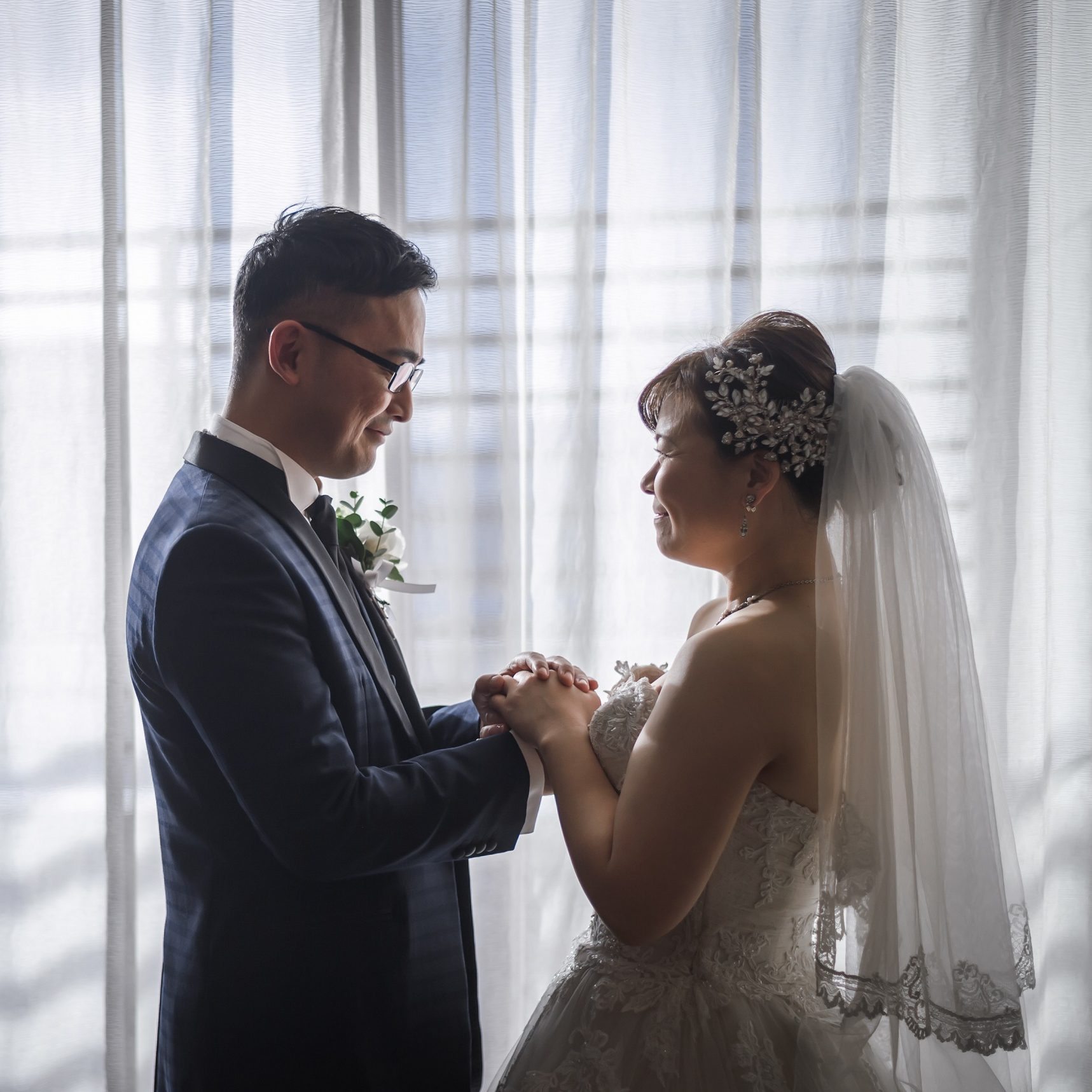 前日の最終準備に時間が掛かり睡眠時間はわずか3時間あまり…。ヘア・メイクが始まり、ドレスを着用し、新郎の身支度も整ったところで写真撮影が始まり、ペアレントタイムでようやく「結婚するんだな」と実感が湧き涙。
