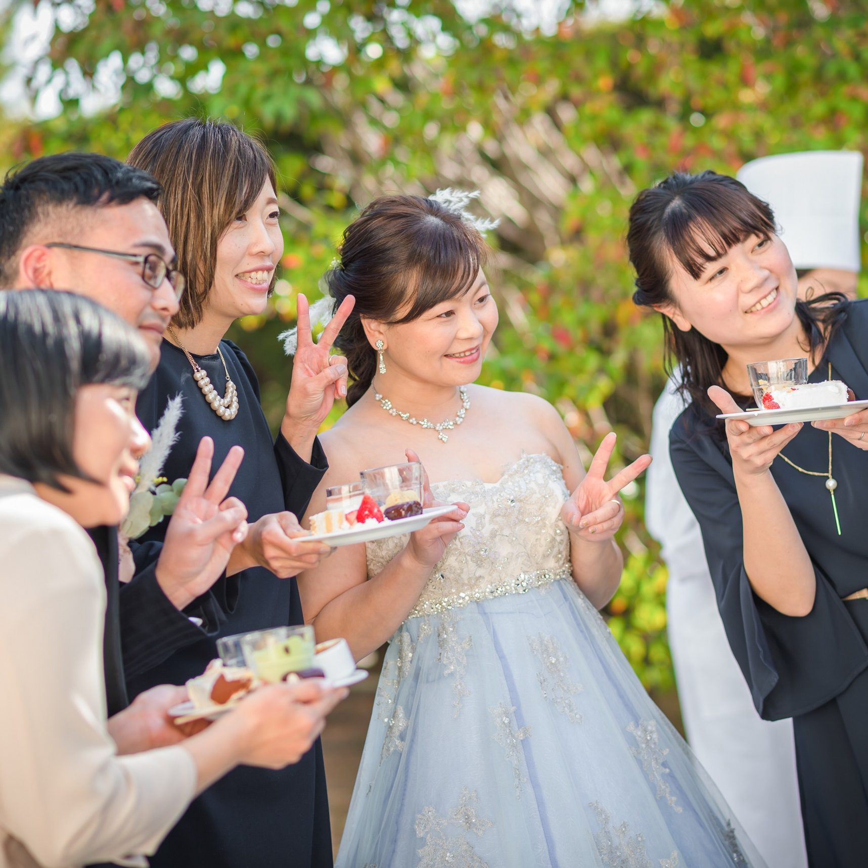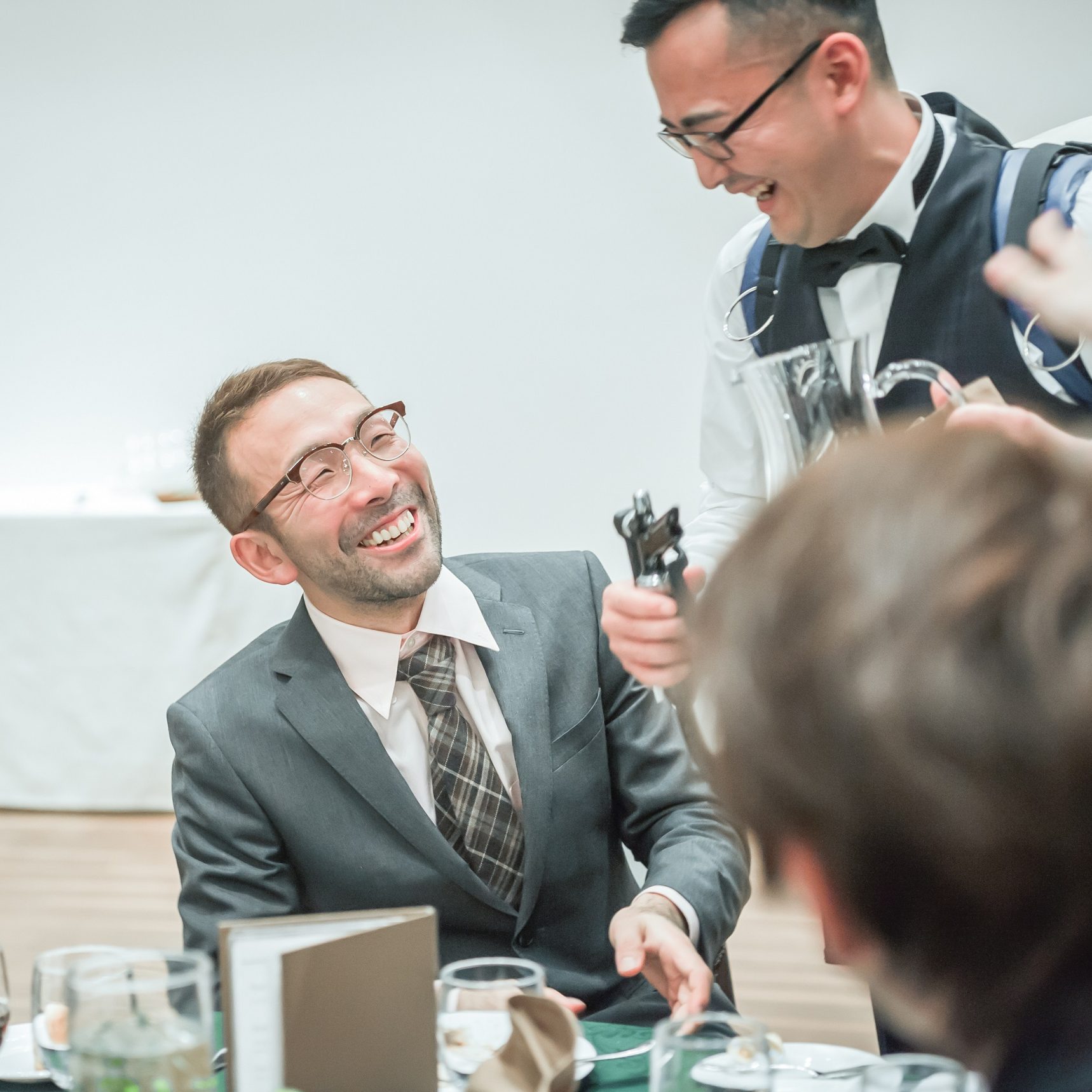 ゲストの方に感謝を伝えるとともに、笑顔で過ごして頂きたいと思い、おもてなしをメインに考えました。料理は実際に試食し、美味しさだけでなく素敵な演出に感動。二人で大満足した料理に決めました。また、職場の先輩からアドバイスを頂き、お酒好きなゲストのためにビールサーバーでのテーブルラウンドをさせて頂きました。