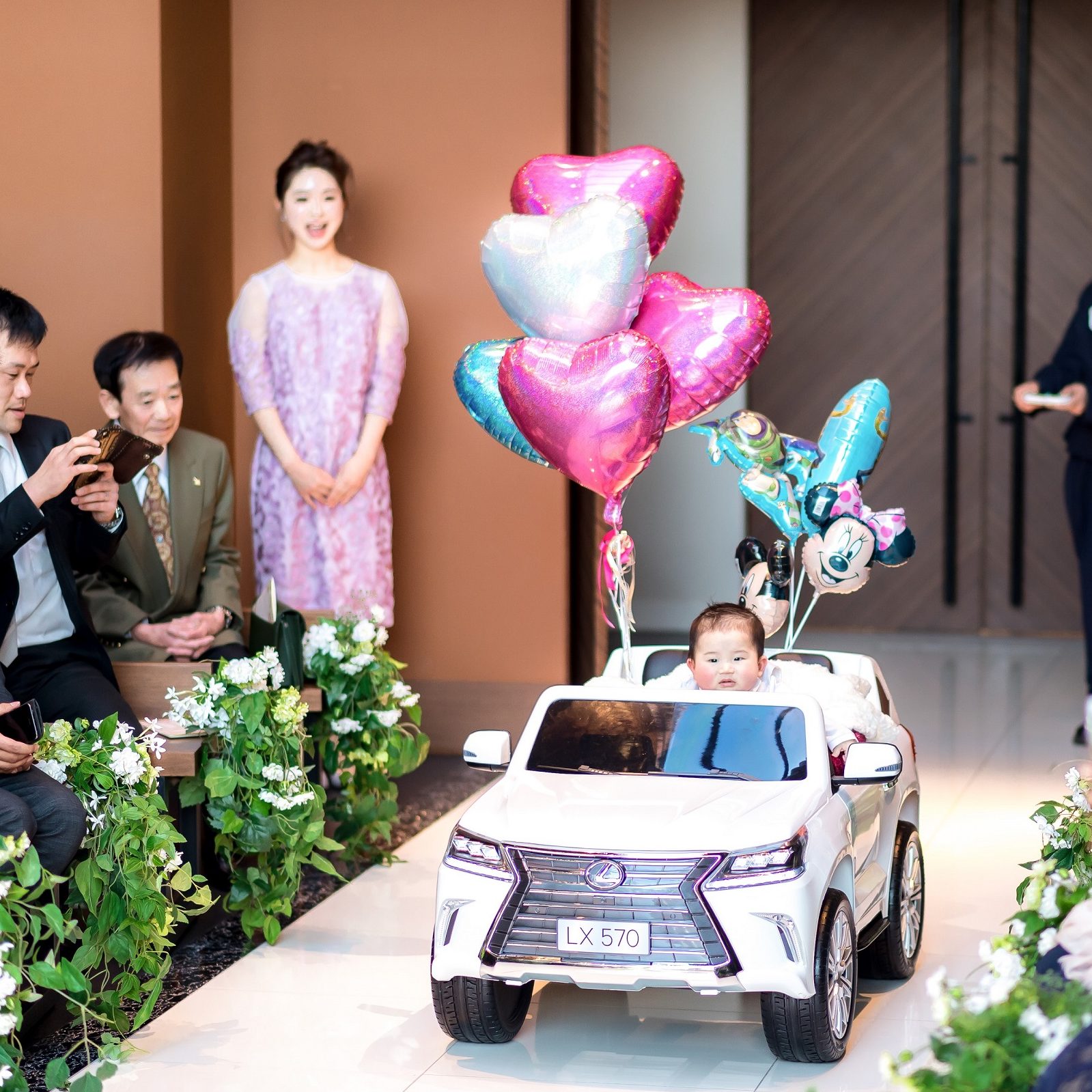 新郎の姪孫にリングボーイ、新婦の従姉の子供にトレーンボーイをお願いしました。リングボーイはラジコンカーに乗って登場し和やかな挙式となりました。ゲスト方に喜んで頂ける料理と楽しんで頂ける時間を二人でアイデアを出しながら考えました。