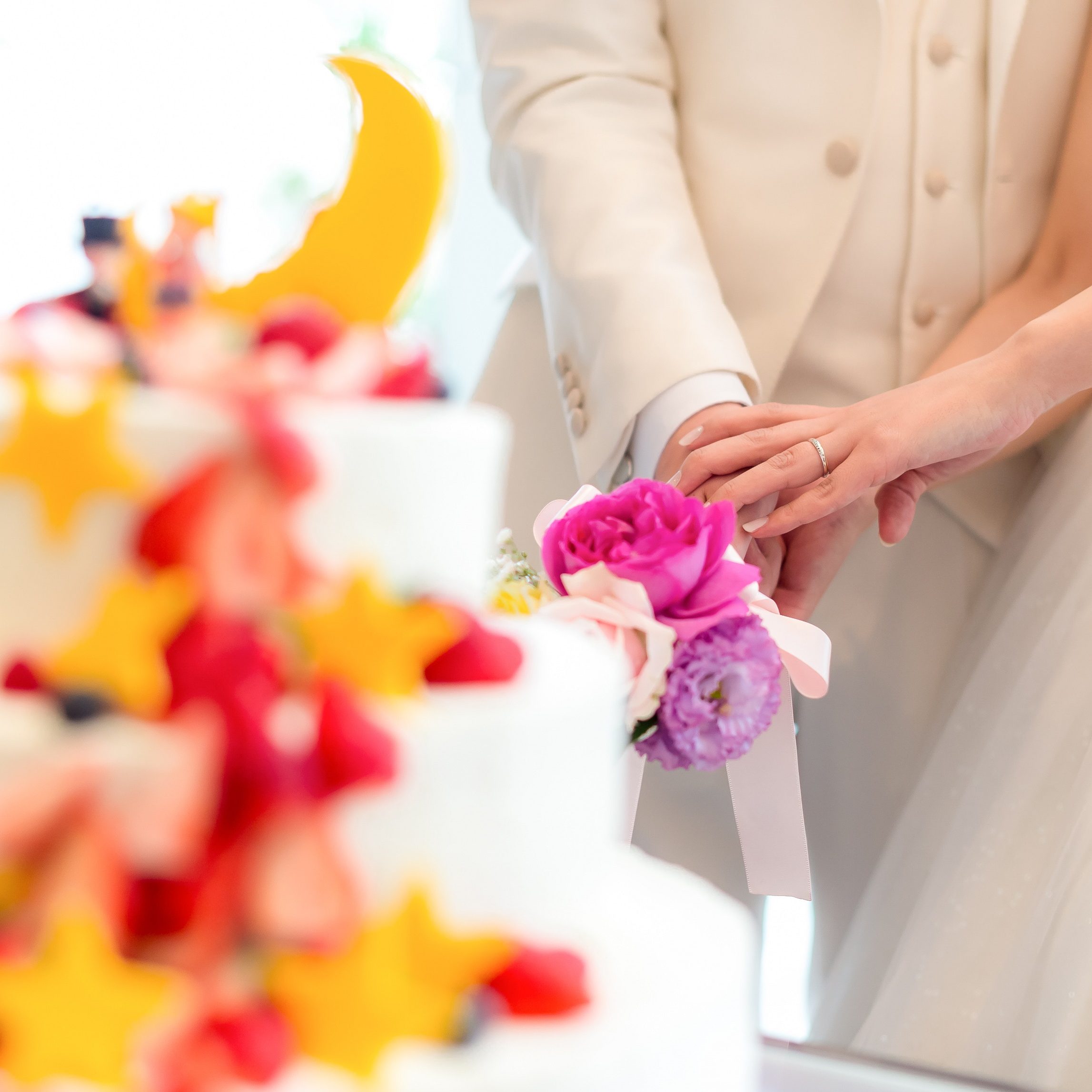 以前から好きなキャラクターをテーマにした結婚式にしたい!という希望がありました。プランナーの方とあらかじめイメージを共有することで、飾り付けはもとより、映像や小物に至るまで、打ち合わせの段階から非常に具体的な準備を行うことができました。特にオープニングムービーとウェディングケーキにはこだわりがありました。そのため、オープニングムービーの曲選びには悩みましたが、完成したムービーを初めて見たときは、曲調とぴったり合った写真の演出に仕上げていただき、感動して涙がでるほど完成度の高いものでした。ウエディングケーキもプランナーの方とパティシエの方には無理を言ってしまいましたが、私達の期待以上のケーキを作っていただきました。また、再入場の時の演出にもダミー入場を取り入れたり、ゲストの皆様へサプライズ要素を多く準備したいと希望を伝えた時も、様々な提案をして頂いたおかげで記憶に残るような結婚式が実現できたと思います。