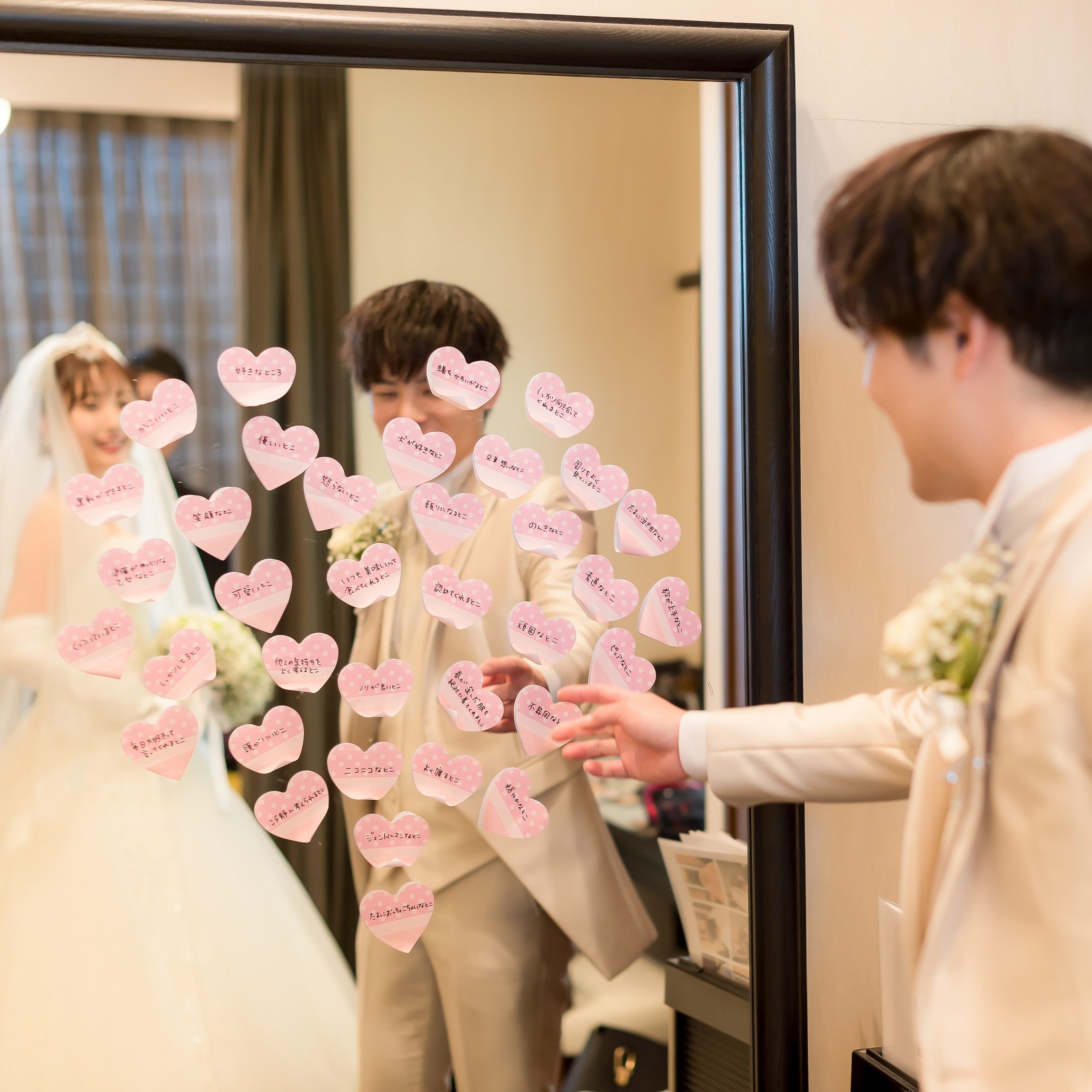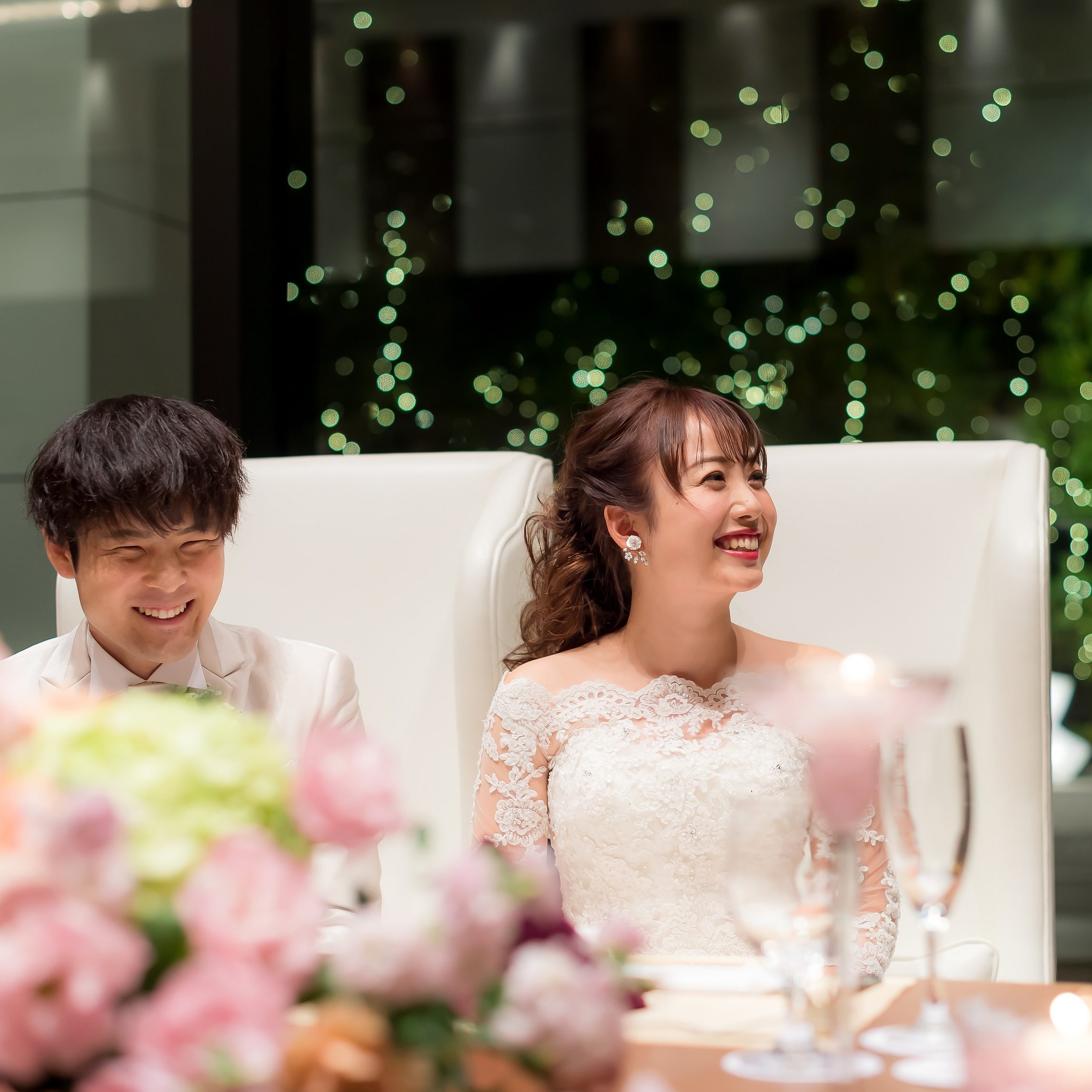 式が終わってからは、ゲストの方々から「演出に驚いた」「私たちも幸せだった」「食事が美味しかった」などと言ってもらえ、特に「とても落ち着いていてあたたかく、二人のありがとうという気持ちが伝わってきて優しい気持ちになれた」と言っていただけたことが、私たちのテーマそのものだったので一番嬉しかったです。