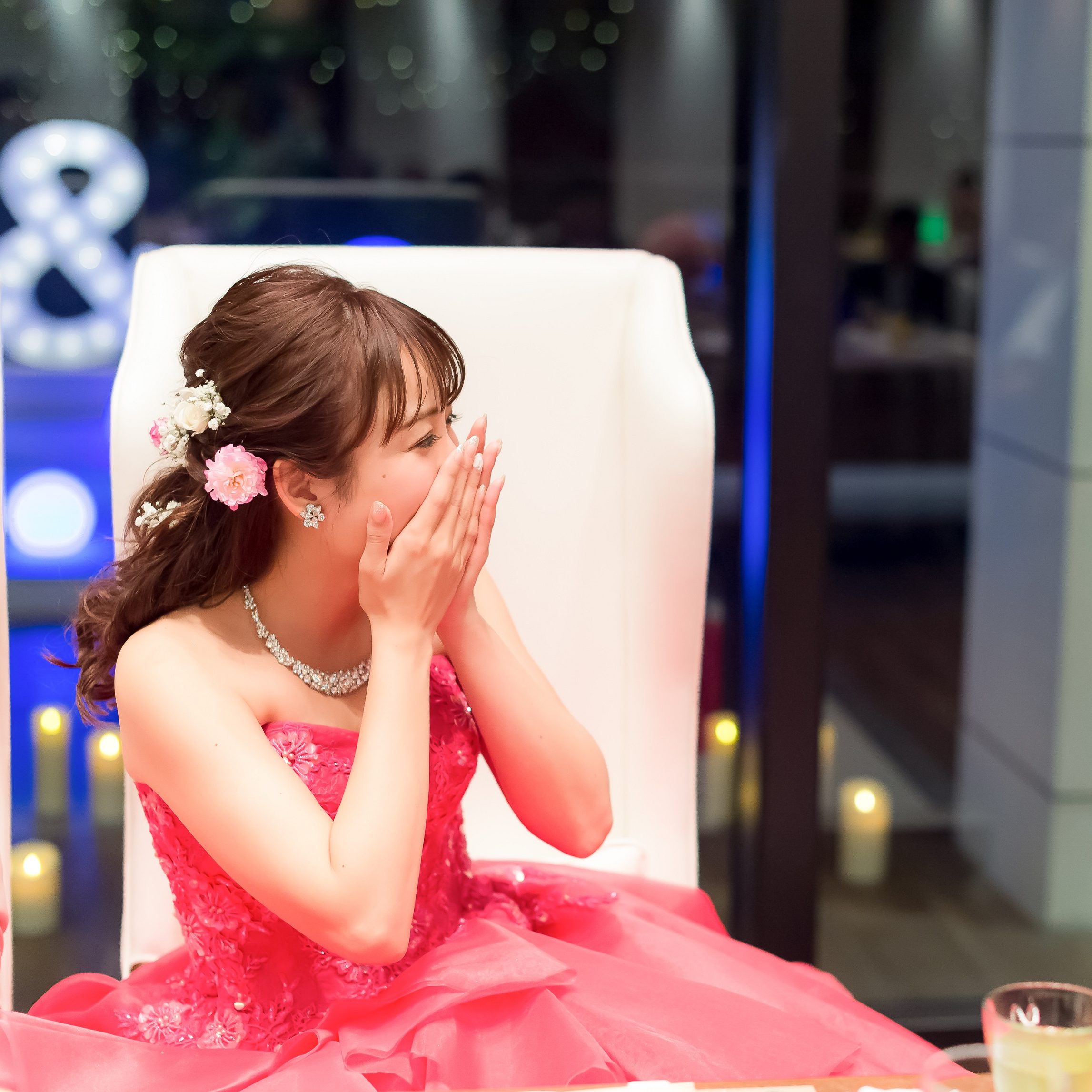 ブライダルフェア当日には、式場の景観や雰囲気、プロジェクションマッピングやエンドロール等、自分たちの表現したいイメージがそのまま現実になったと思えるほど魅力に溢れ、気づけば見学当日に成約していました。