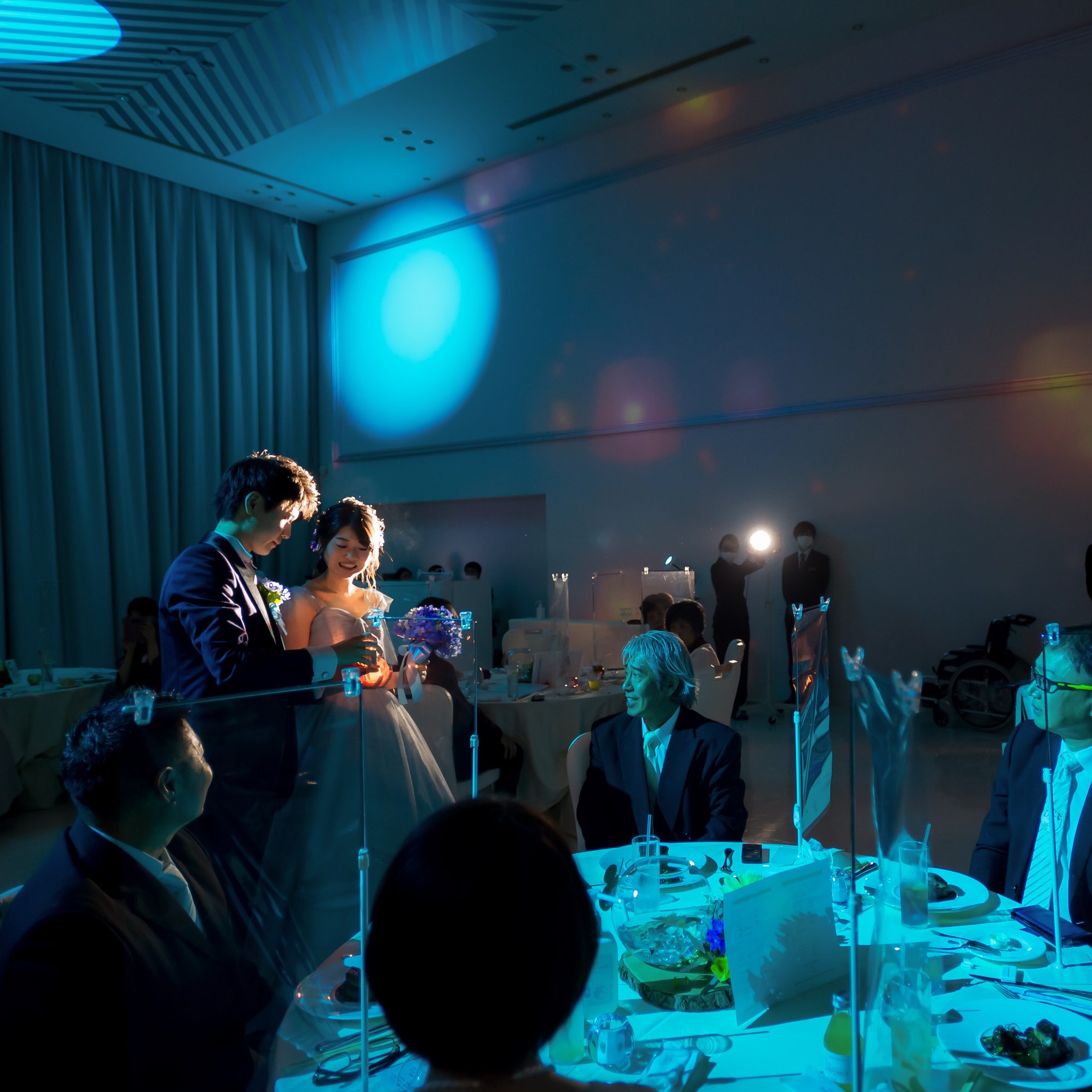 そして、プロジェクションマッピングやBGMにはとても感動して、スタッフさんとの話し合いのときに、ふんわりとしていた結婚式のイメージだったのが、いろいろな提案をしてくれたこともあり、一気に自分の結婚式のイメージが固まったので、一目惚れで式場を選びました。