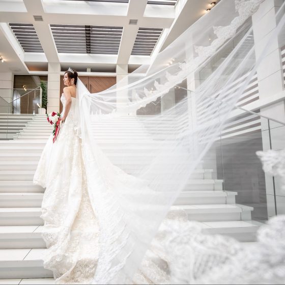 私達はすでに契約済の式場があったにも関わらずザ・リーヴス プレミアムテラスを契約しました。きっかけはたまたま目についた広告です。理想とする演出上、階段のある会場を探していた私達は見学を決意。当日見学の担当をしてくださったスタッフの心遣いや熱意を感じた事が大きな決め手となりました。また、ザ・リーヴス プレミアムテラスが得意とする光やマッピングを使った演出はどこの式場と比べても圧倒的な演出力でした。一生に一度の結婚式をここで挙げられたらどんなに幸せだろうと他の式場の見学では味わえないほどの感動もあり選ばせていただきました。