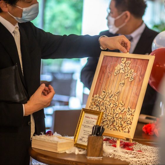 当初は5月に予定していた結婚式ですが、新型ウイルス感染拡大のため10月18日へ延期。いつ終息するかわからない状況が続く中不安を抱え準備する日々を過ごしていました。しかしメールで相談してもいつも前向きに励ましてくださり、打ち合わせの際もひとつひとつ不安を取り除いてくれる素敵なプランナーさんに出会えた事からとても安心して当日迎えることができました。リクエストショットを依頼した私達は当日朝から撮影。事前にお伝えしたリクエストショットを全て叶えてくださいました。そのために早入りをお願いした美容スタッフさんもリハーサル通り素敵なお仕上げをしていただきました。当日を迎えなければイメージが湧きにくい披露宴会場は理想を上回る仕上がりでした。進行通りに進む中たくさんのスタッフさんの協力があって今ここに立てていることを実感。ひとりひとりに感謝の気持ちを伝えたいほどです。 1年3ヶ月という月日を支えて下さったプランナーさんは大事なタイミングで必ずそばで見守ってくださりとても安心感がありました。準備や考えることはたくさんありましたが当日は本当にあっという間でした。当日を迎えて改めて分かったことはザ・リーヴス プレミアムテラスのスタッフさんの質やクオリティの高さです。少なくとも私達が携わったスタッフの方全員【夢•憧れを形にする】そんな気持ちを強く感じました。いろんな思いで集まってくださったゲストの皆様にも、マスクの下には笑顔があり、たくさんの【おめでとう】【素敵な結婚式だったね】【呼んでくれてありがとう】伝えきれないほどの感想をいただきました。それだけで私達はザ・リーヴスプレミアムテラスを選んで良かったと心から思っております。一生の思い出がリーヴスで作れたこと、そしてリーヴスのスタッフの方々と過ごせた時間に心から感謝しております。