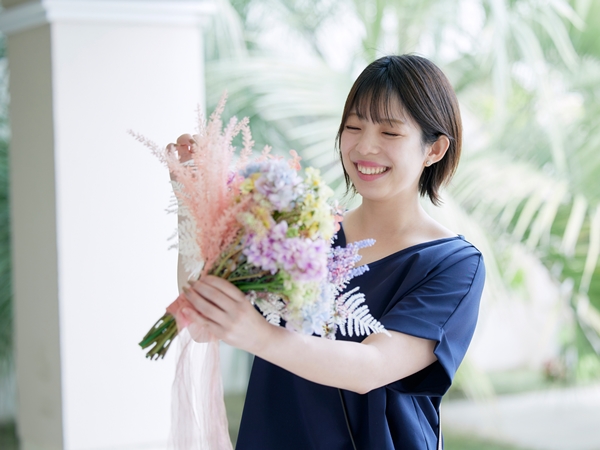 会場の装花アレンジやブーケはもちろん、小物やクロスのセレクトに至るまで、おふたりの式のスタイルに合わせたトータルコーディネートをご提案させていただきます。式を美しく彩る装花やブーケは、最高の状態で式を迎えられるようタイミングに細心の注意を払い、一枚の花びらにまでこだわってご提供しております。