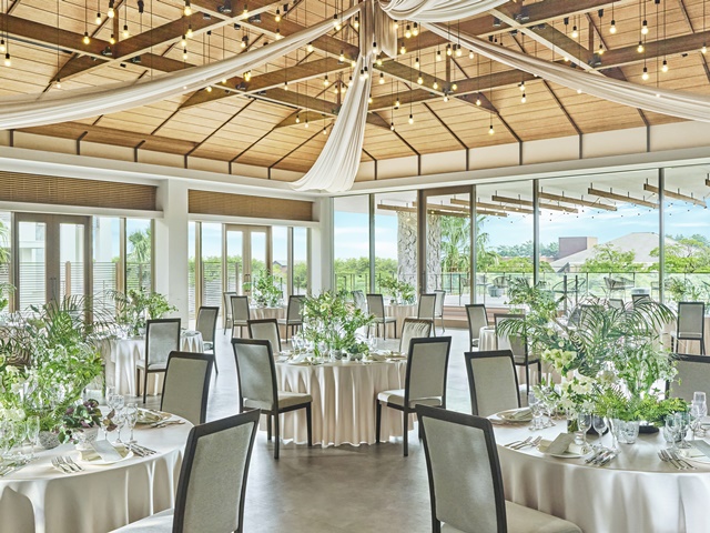 ザ・ミーツ マリーナテラスには、おふたりのスタイルに合わせてお選びいただける2つのバンケット「カーサ・プルメリア」と「カーサ・フリージア」と、少人数でのウエディングに最適な 「コンサバトリー」 をご用意しております。
