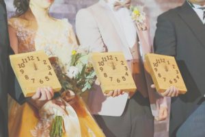 新郎新婦、そして両家親御様の3つの時計が