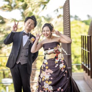 オリエンタルドレスとは、ドレスの上に振袖を纏った和洋折衷のお衣装です!