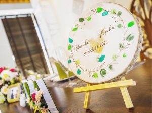 ウエルカムスペースに飾ったり、挙式でゲストの承認サインの代わりをしたり、様々な方法で使用することができます!