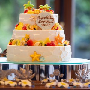 ミーツの会場に合わせたリゾートテイストのケーキ