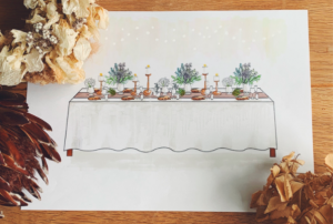 どんなお花にする? どんなテーブルクロスにしよう? ナフキンの形は?