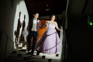 ご披露宴最初の入場とは場所を変えて階段でのご入場も♪