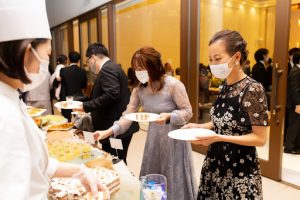 ゲストはスイーツを自由に選べてテーブル以外のゲスト同士でも会話が弾む♪
