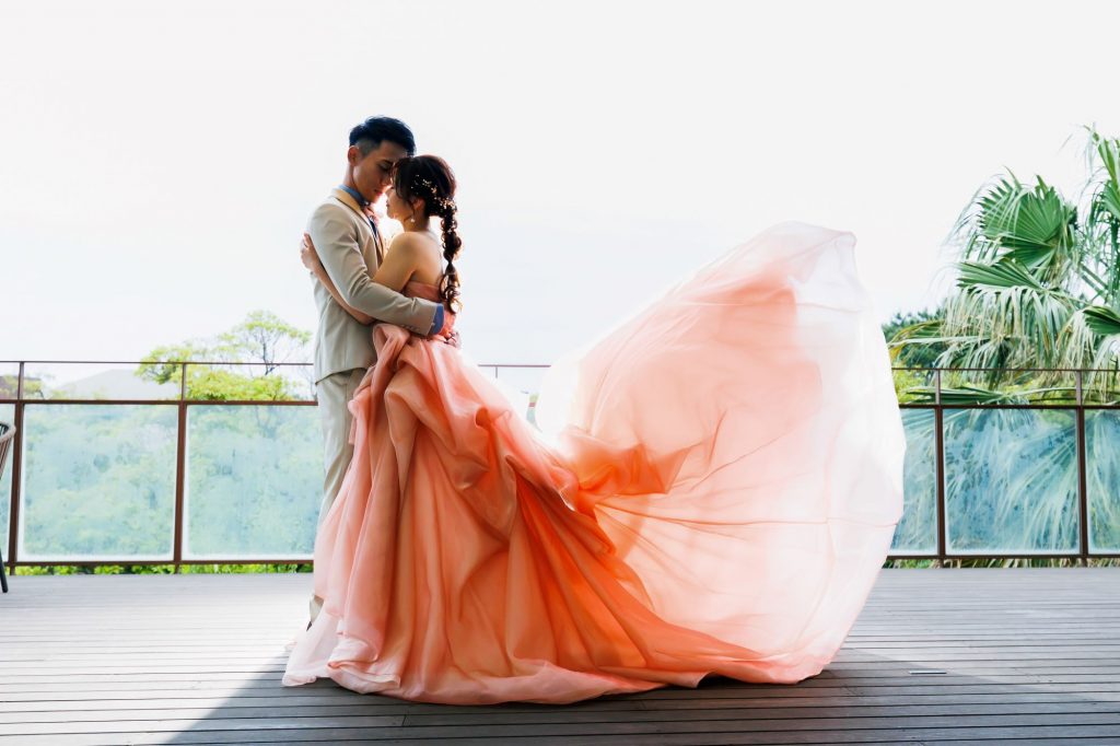 遠目でも目を引くので写真映えも抜群なので、結婚式当日はもちろん、前撮りでも大注目。