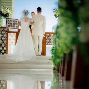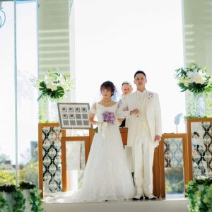 お天気も味方してくれ、より一層光に包まれて執り行う挙式
