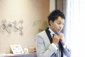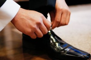 新郎様は靴紐を結んでいる姿や、袖のカフスボタン、ネクタイを整えている姿を撮影させていただきます。