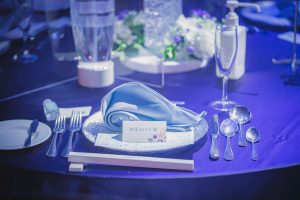 お二人を引き立たせるホワイトの中にブルーを♪