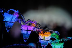 お二人でお水を注ぐと、器の中に色とりどりの花が咲き始める