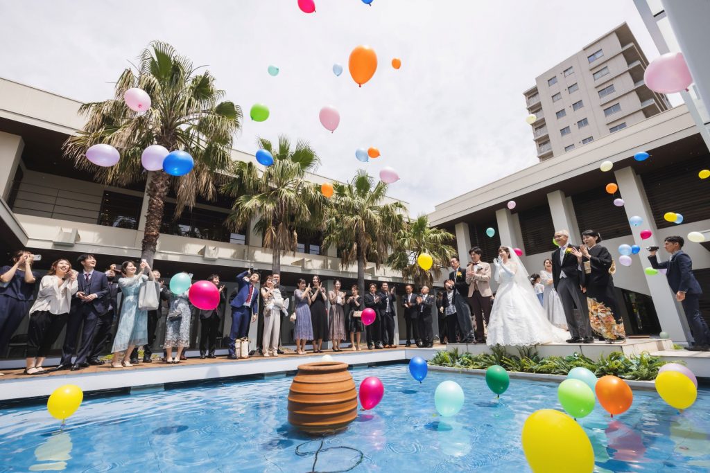 バルーンを見つめるおふたりとゲストの表情にご注目♪