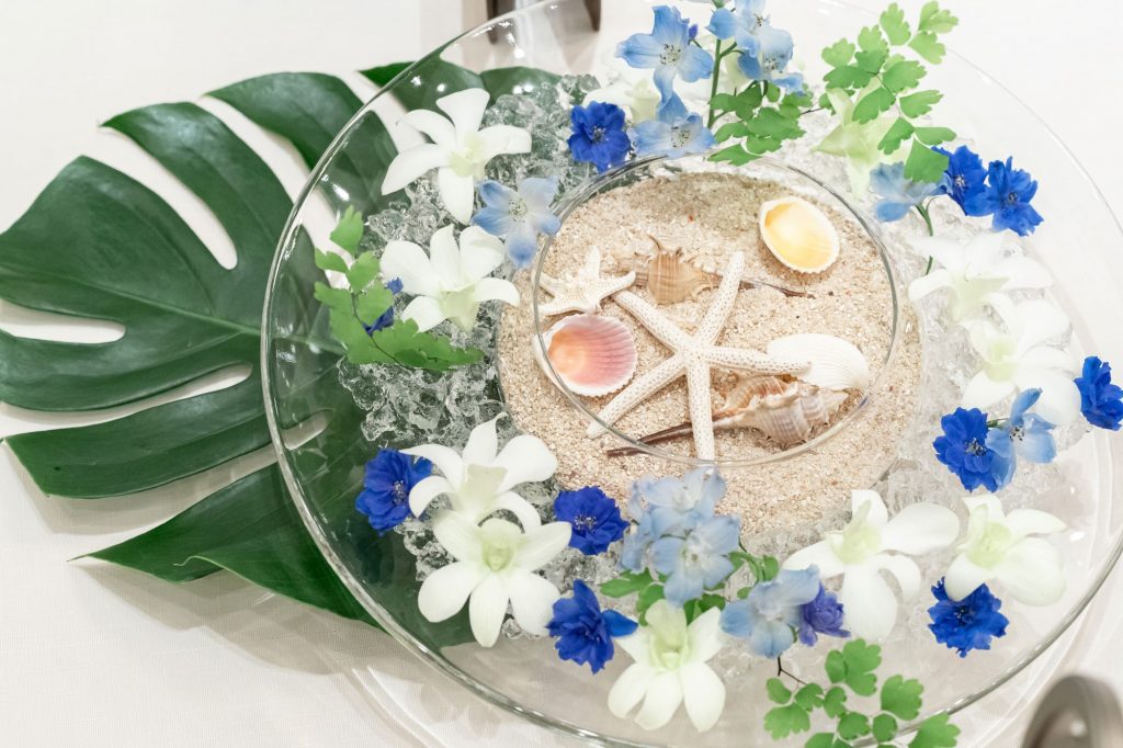 白い砂や貝殻はもちろん、ジューシーなフルーツを使った