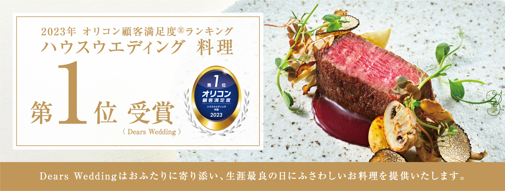 「2023年 オリコン顧客満足度®調査 ハウスウエディング 料理 第1位(Dears Wedding)」