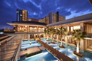 ナイトタイムは噴水や水辺がライトアップされ、とても幻想的な空間になります。