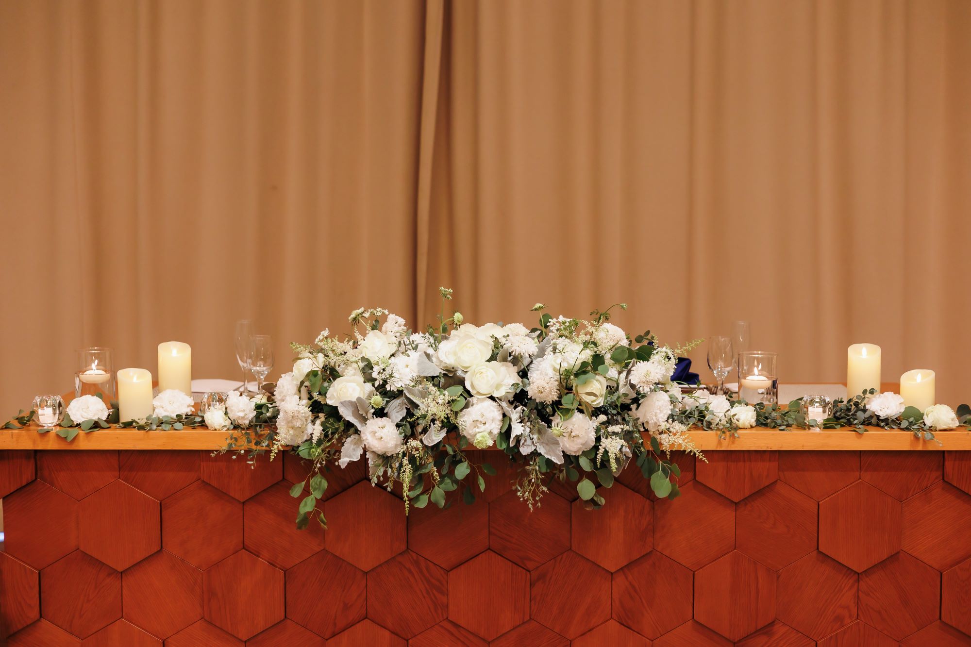 自然光がたっぷり入る明るい会場に似合うテーブルスタイルです。