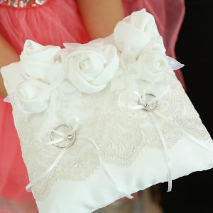 リングピローとは、結婚式において指輪交換の際に、指輪を置いて運ぶ台座的な物です。