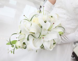 このブーケもにもたくさんの種類あり、基本的には着用するドレスに合わせて