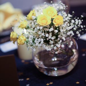 お花はカスミソウをベースに星や月をイメージさせるイエローを差し色に…♡