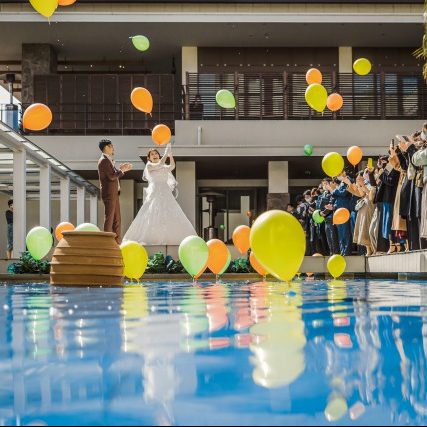 そして挙式会場と披露宴会場(プルメリア)、アクアテラスがどタイプすぎて、