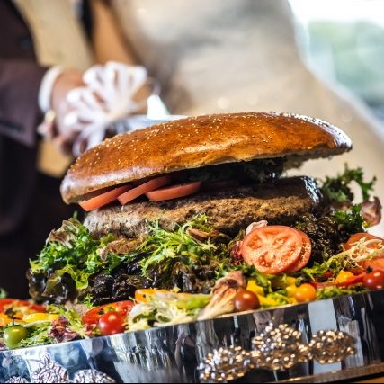 ケーキ入刀ではなく、ハンバーガー入刀にしたのが披露宴の1番のポイントです!
