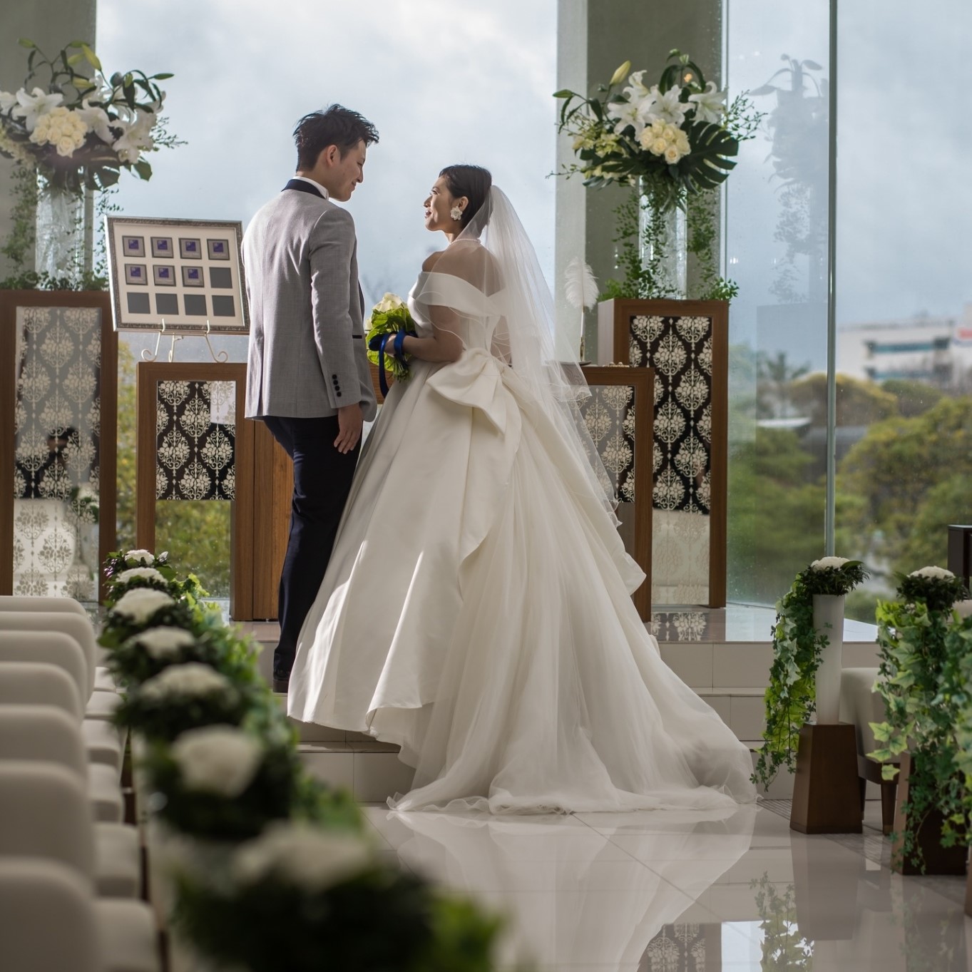 当日はあいにくの雨天でしたが、全面ガラス張りのチャペルのため暗さなどは全く気になりませんでした。