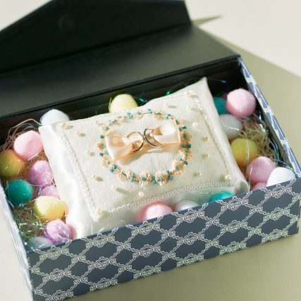 挙式は、硬くなりすぎずアットホームな雰囲気で行いたかったので人前式にしました。知 人によるハンドメイドのリングピローやオリジナルの結婚誓約書を使用し、友人代表に誓約書への署名をお願いしたり、ゲスト皆さんの前で誓いの言葉を読み上げたりするなど、自分たち独自のカラーをもつ式にすることができました。透明感のある白を基調としたガラス張りのチャペルには、たくさんの陽光が差し込み、清麗された特別な空気感をもつ光景が今でも目に焼き付いています。また、アフターセレモニーでは、当初からの念願であったリボンシャワーとバルーンリリースを行いました。どこまでも続く快晴の空にバルーンが広がっていく光景に、これからの自分たちの将来を重ね合わせることができ、とても感慨深いものがありました。