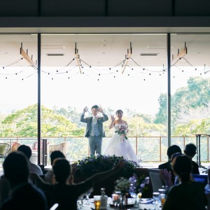 大きな窓に面したバルコニーからも登場することができ、会場内のゲスト全員の笑顔がしっかり見えたことが印象的でした。外からなので冬場は寒いですが、緊張により寒さなどまったく感じなかったので大丈夫でした(笑)
