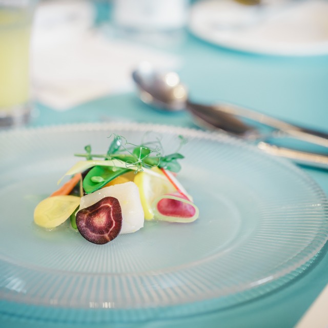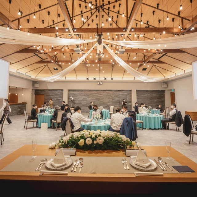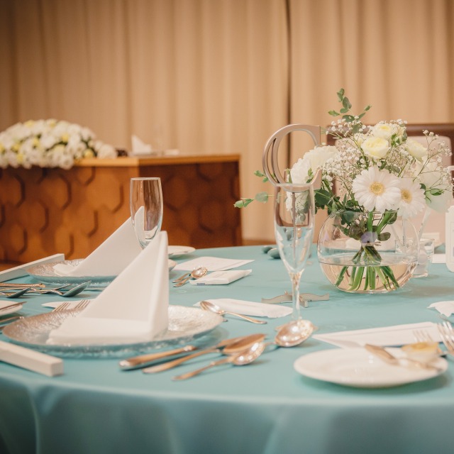 披露宴は、ゲストの方と食事を楽しみながらお話する時間を