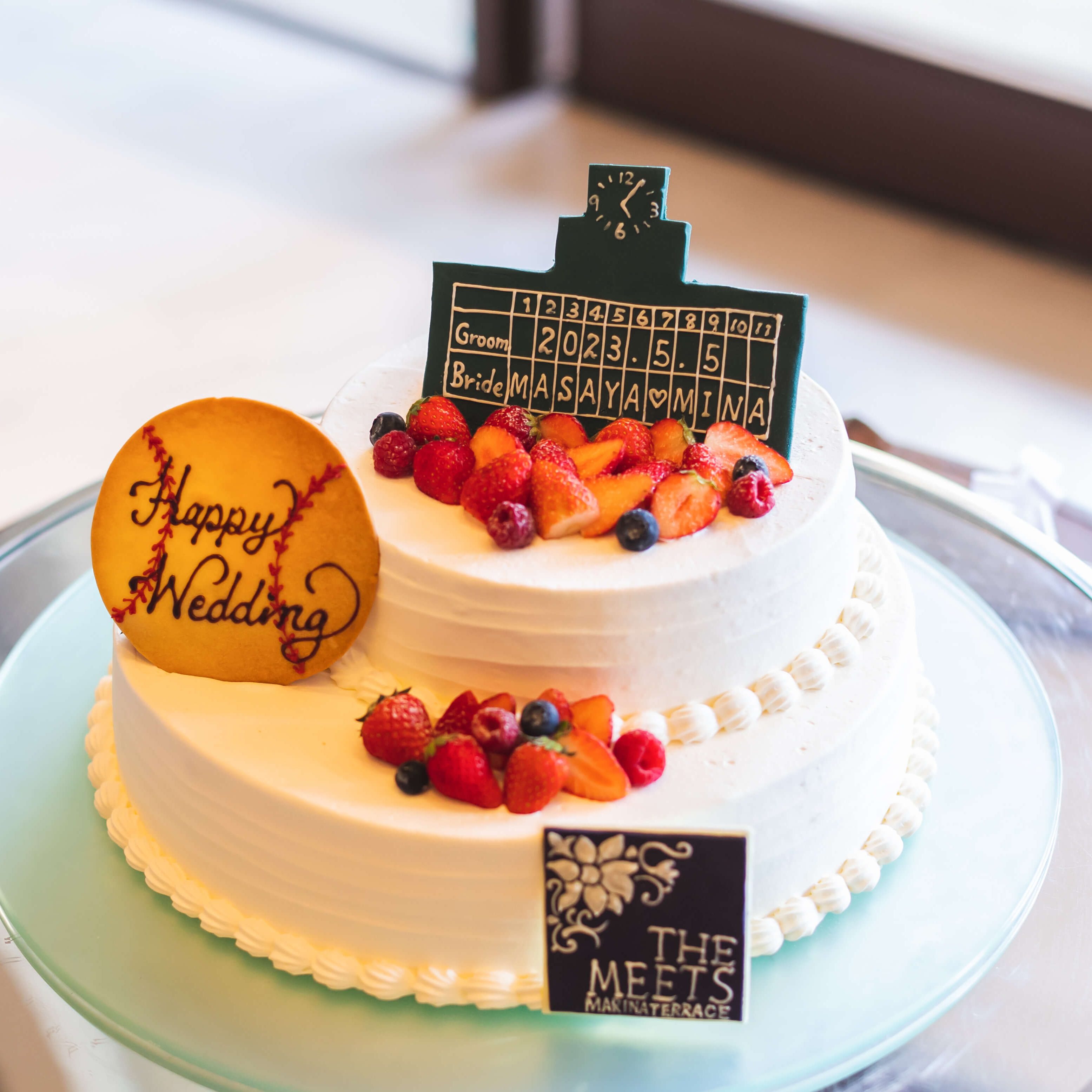③野球とソフトボールをしていた2人らしさをケーキで表現するため、イメージしたケーキを伝えるとイメージ通りのケーキをつくっていただき、大満足でした。