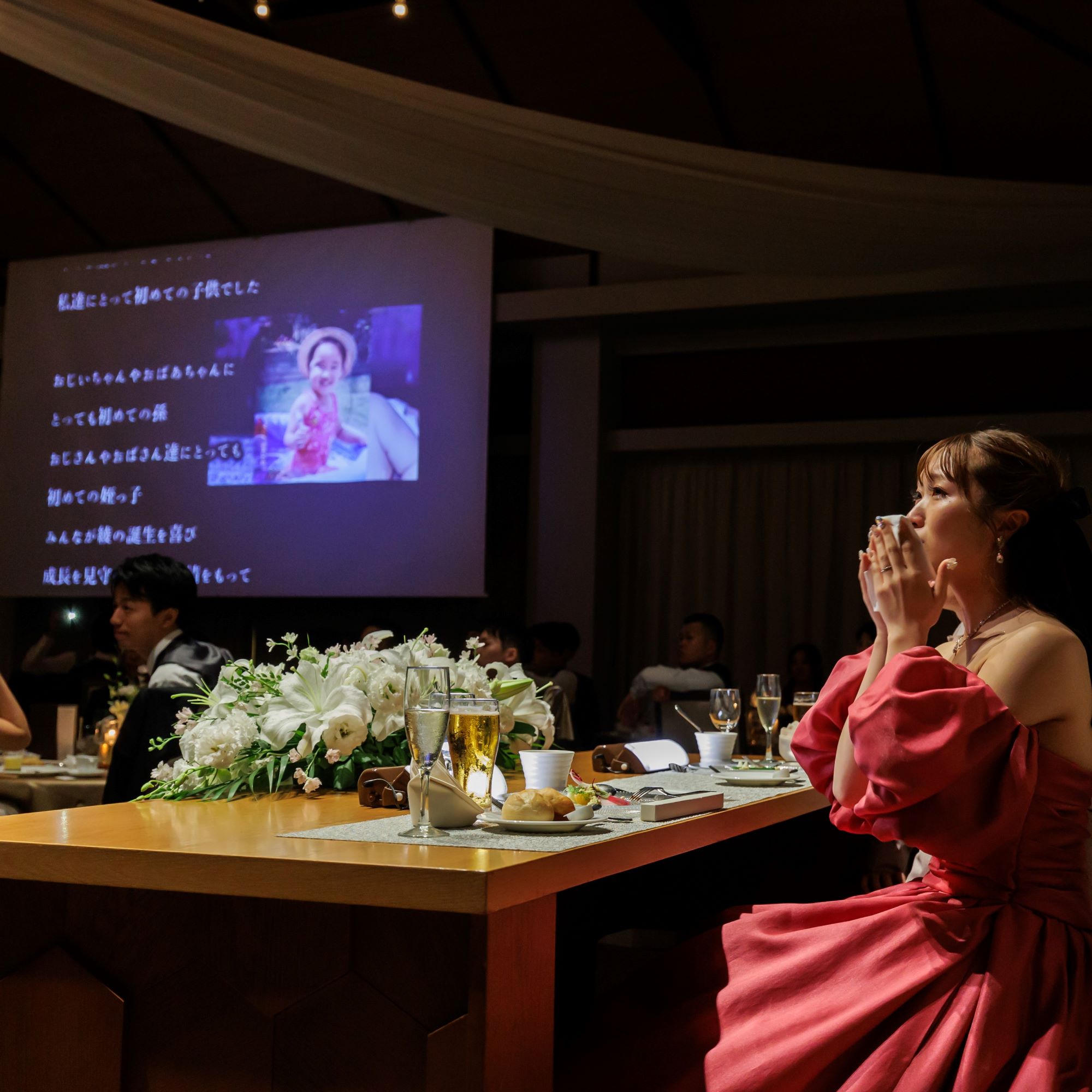装花の打ち合わせも、映像の打ち合わせも、担当の方が皆さん親身になって要望をきいてくださり、イメージ通りの式を行うことができました。