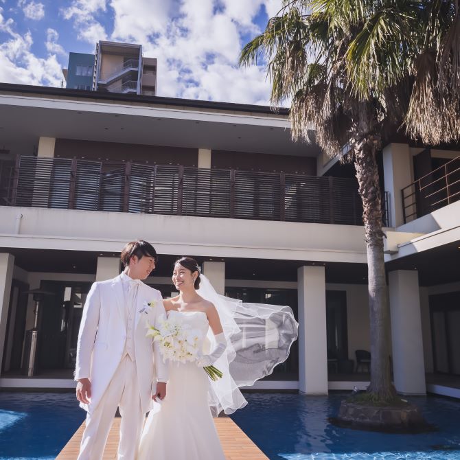 雰囲気を活かすため花や小物・装飾などもリゾート感のあるデザインにこだわりました。