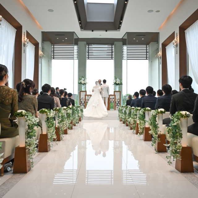 開放感あふれるチャペルや、アクアテラスなどの会場の雰囲気が良く、