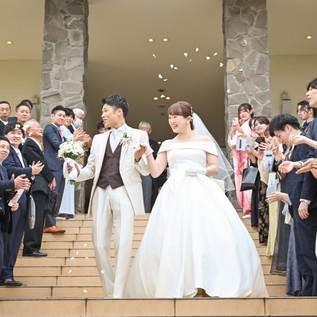 フラワーシャワーの時だけ奇跡的に晴れてくれて、スタッフの皆様が大急ぎで準備してくれているというお話を聞いた時は本当に感動しました。ありがとうございました。