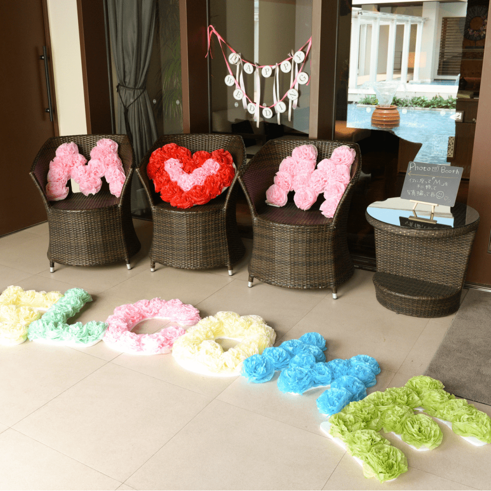 →ラウンジにちょっと変わった面白いフォトフロップスを置いたり、アクアテラスに手作りの「WELCOME撮影スポット」を作り、待っている間に写真を撮って楽しんでもらえるようにしました。