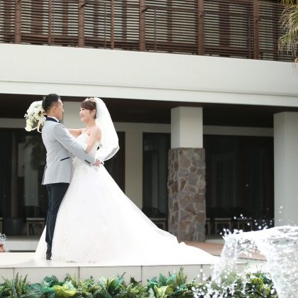 石垣島が大好きで式を挙げようか迷っていましたが、沢山の方に感謝の思いを伝えたく地元でリゾート感のある結婚式場を探していました。雑誌で一目惚れし見学に伺いましたが、アクアテラスの綺麗さに驚き、ここで式を挙げたい!という思いに。また、披露宴会場にテラスがあることやモーションカーテン演出など、案内していただくたびに胸がワクワクしました。何よりプランナーさんが私たちの気持ちに寄り添ってくださり担当プランナーさんはこの方にお願いしたい!と2人で即決しました。